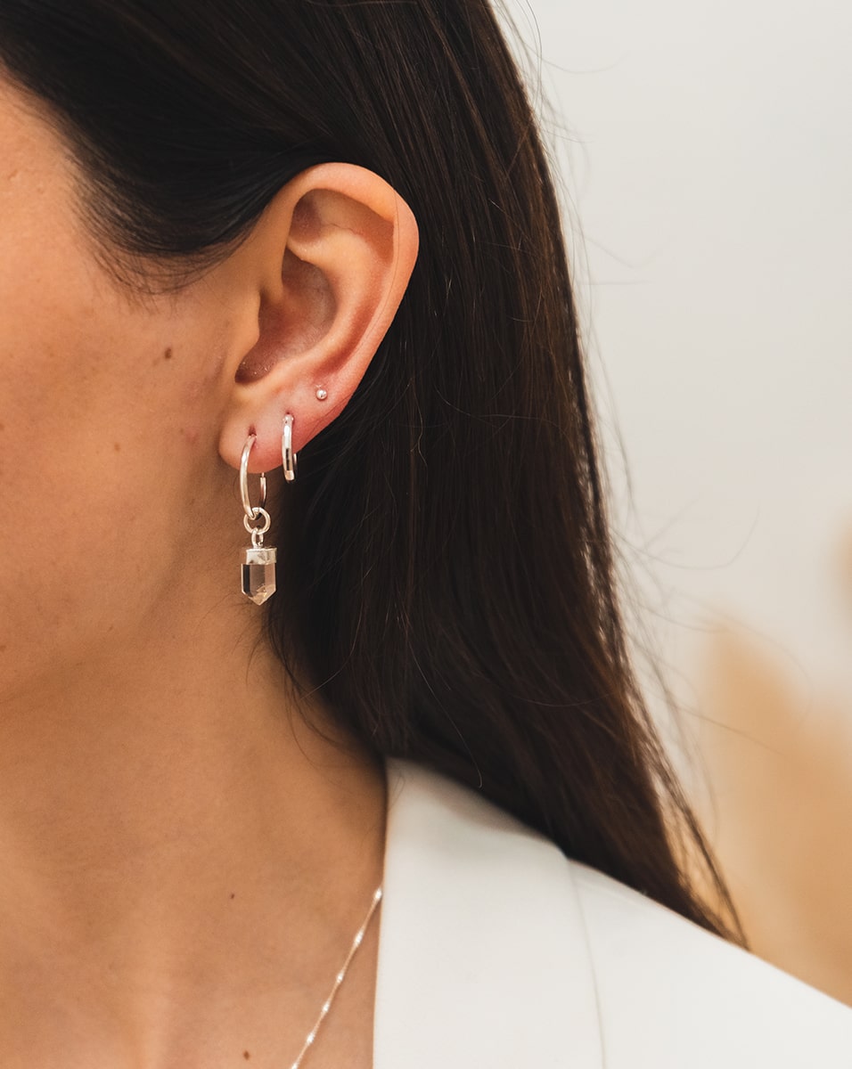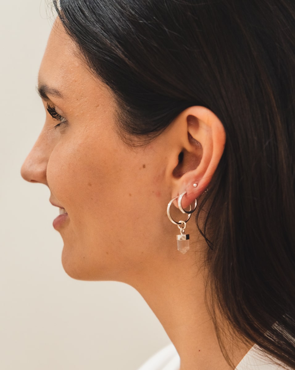 Argollas de Plata 925 con colgante cuarzo cristal. Incluye packaing de regalo